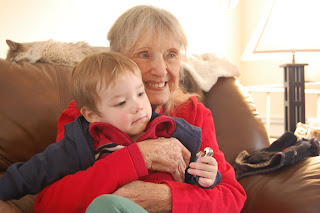 Well.... My grandma has gone home to Jesus. This picture is of the first few moments that she saw her pooch- Bonnie- the day before her passing. She was an AMAZING woman who was always so generous and kind. In this picture: FOUR generations! Grandma, my Mom, Myself and my daughter. Four whole generations of women! Amazing, eh?
